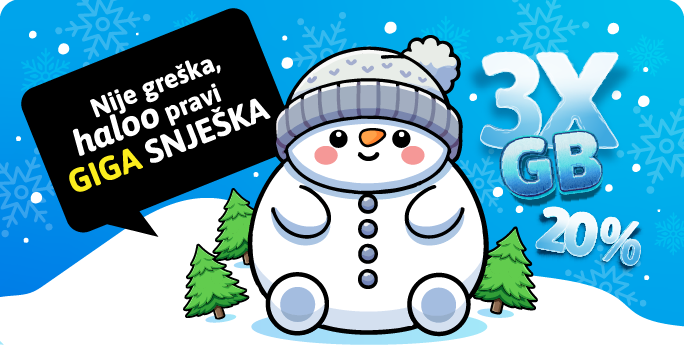 Odaberi svoju haloo tarifu, potpiši ugovor na period od 12 ili 24 mjeseca i dobijaš 20% POPUSTA + 3x više GIGA tokom trajanja ugovora!